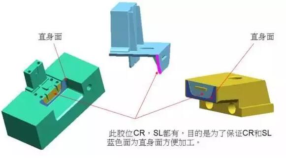 為了防止產品粘前模所以設計行位延時開模,前后模已打開一部分但是行位還沒有滑動,通過行位把產品夾住(有扣位)保證產品在后模。產品柱子大部分在行位上,所以行位要設計運水冷卻!