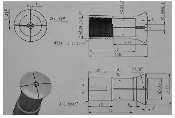 2、與產品內孔定位接觸的外圓在制作時需留單邊0.5mm的余量,最后裝到儀表車床上在精車到尺寸,防止淬火過程導致的變形和偏心。