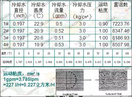 按如下公式計算出其雷諾數(shù);雷諾數(shù)(Re)=3160×冷卻水流量/冷卻水直徑× 運動粘度;
