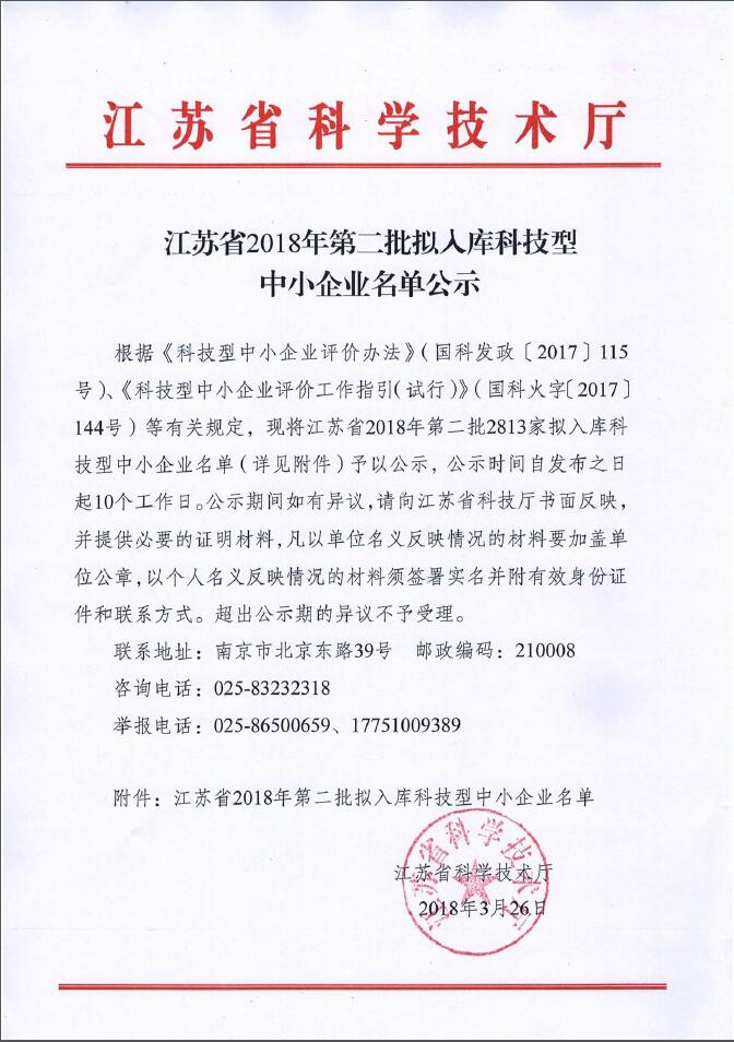 “江蘇省科學技術廳科技型企業認定”是指在江蘇省重點支持的科學技術領域,持續進行研究開發與技術成果轉化,形成企業核心自主知識產權,并以此為基礎開展經營活動,將省重點科學技術成果轉化成生產力的技術水平,屬于省內領先的企業。是科技企業最高的榮譽之一,是對企業科研實力一個最權威的肯定,是企業對外交往時一張重要的“金名片”。資格認證要通過省、市政府科技主管部門組織評審。除了要考察企業整體經營業績之外,更著重對企業創新研發管理水平、產品技術含量、成果轉化能力、成長性、質量保證等重要指標的考察,評審過程嚴格而苛刻。通過省科學技術廳科技型企業認證,證明企業在本領域中具有較強的技術創新能力、高端技術開發能力,是省級重點支持的具有高成長性的企業,具有較好的潛在經濟效益。